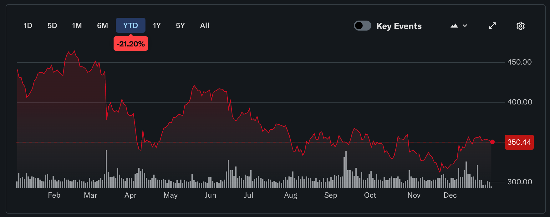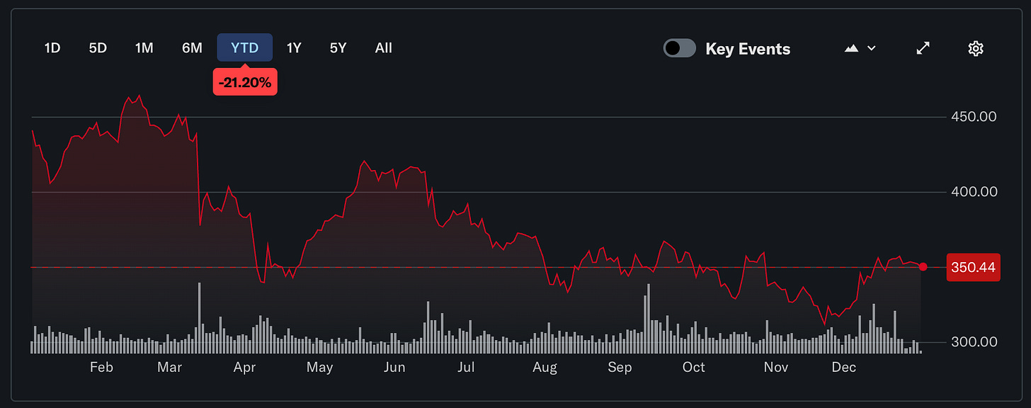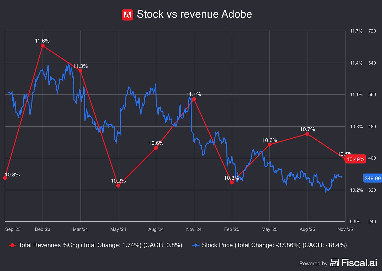 What makes this even more stark is that Adobe was already down 24% in 2024, after, once again, growing revenue 11% and buying back billions worth of shares.