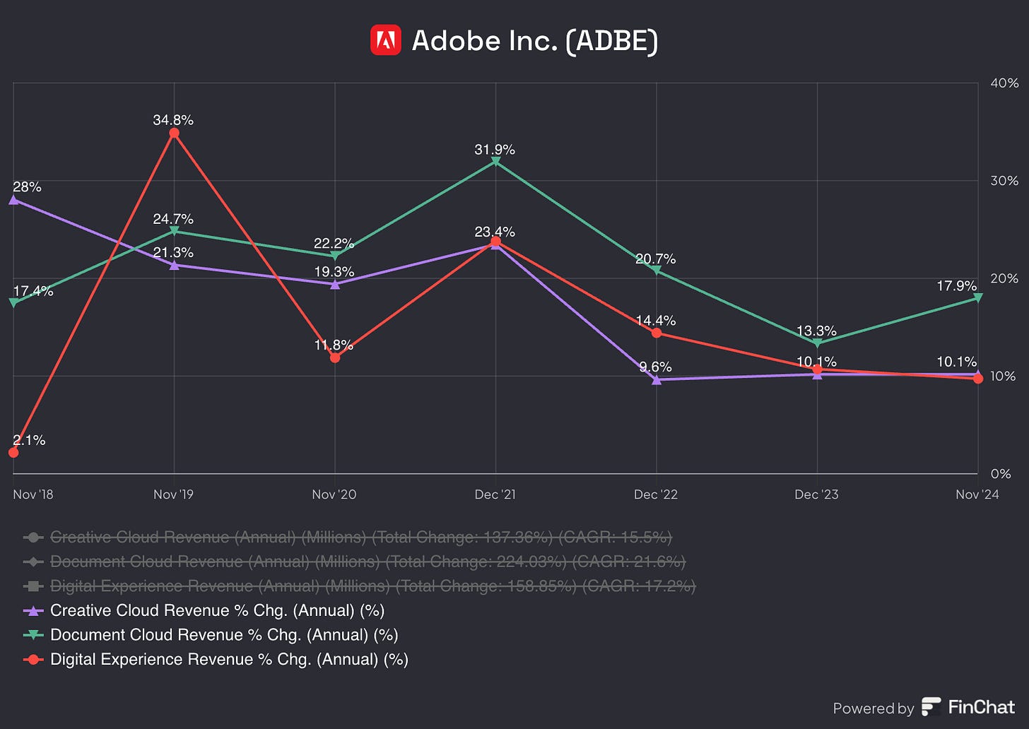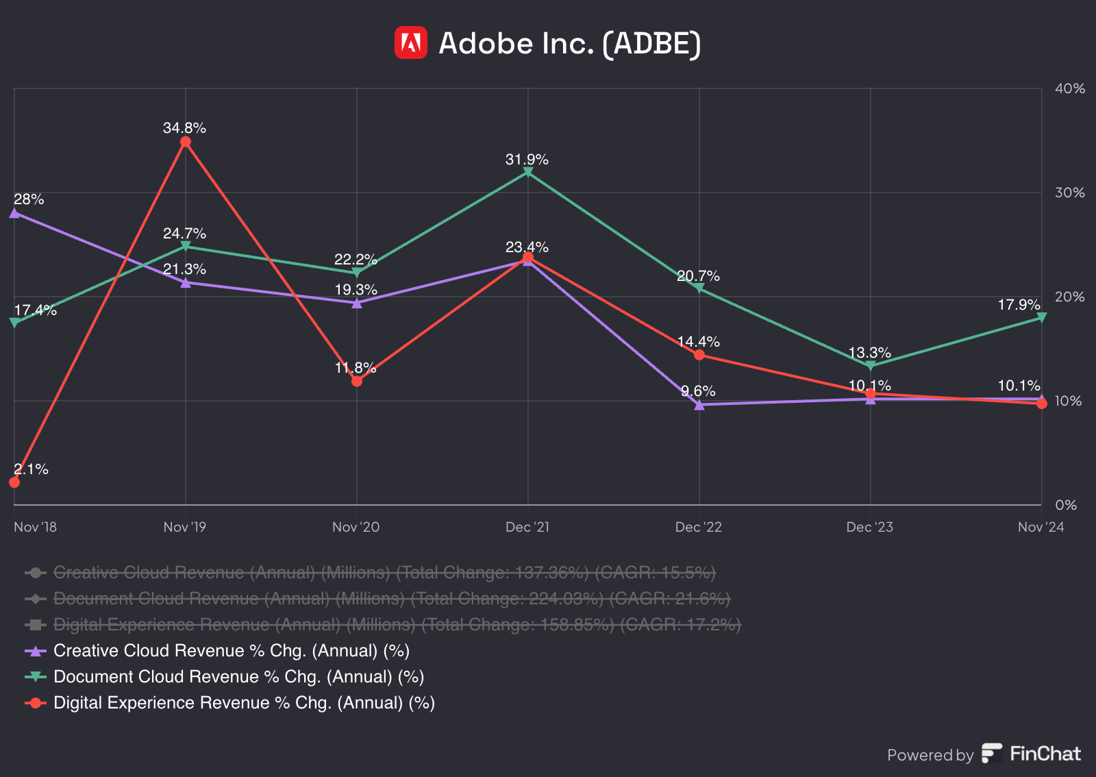This business segment has also seen significant growth and has actually accelerated growth throughout 2024 - a very impressive feat. This shows that Adobe's go to market initiatives and dominant position in the market is proving powerful.