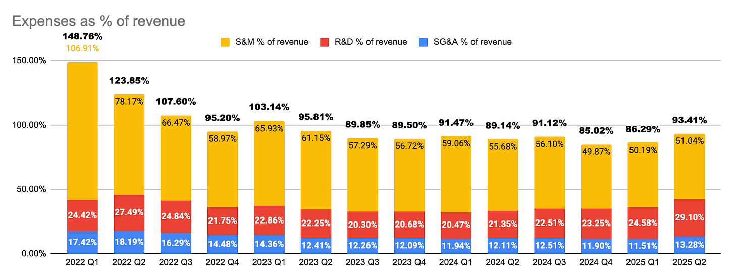 2024 total customers only grew 8% over 2023, and in Q2 2025 customers with 10+ seats only grew 9%. So it seems like the SMB segment, the core of Monday's historical business is slowing.